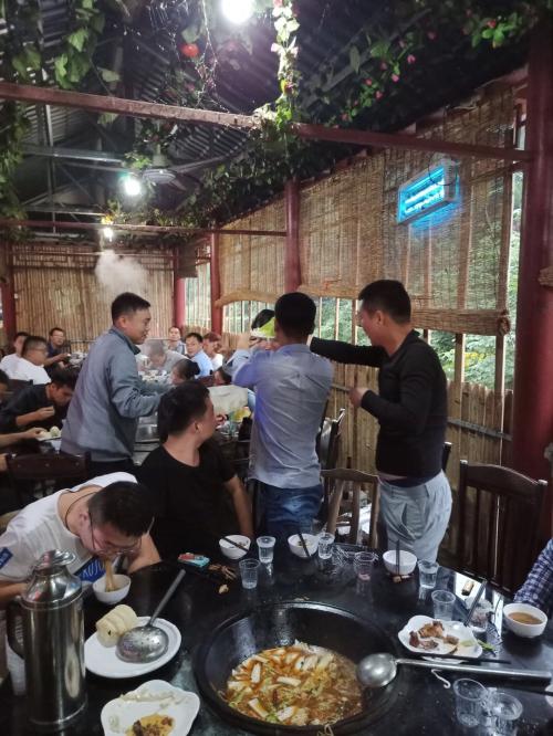 雨天游玩随着夜幕的降临接近了尾声,极具当地特色的地锅鸡让大家在游玩之后可以大饱口福。柘城同事的一曲豫剧《小仓娃》引得大家接连叫好,张啸波别具一格的歌曲唱法使晚会现场掌声四起。诗朗诵、豫剧、歌曲、团队游戏等的精彩表演再次印证了丽华集团这个大家庭是藏龙卧虎的栖息地